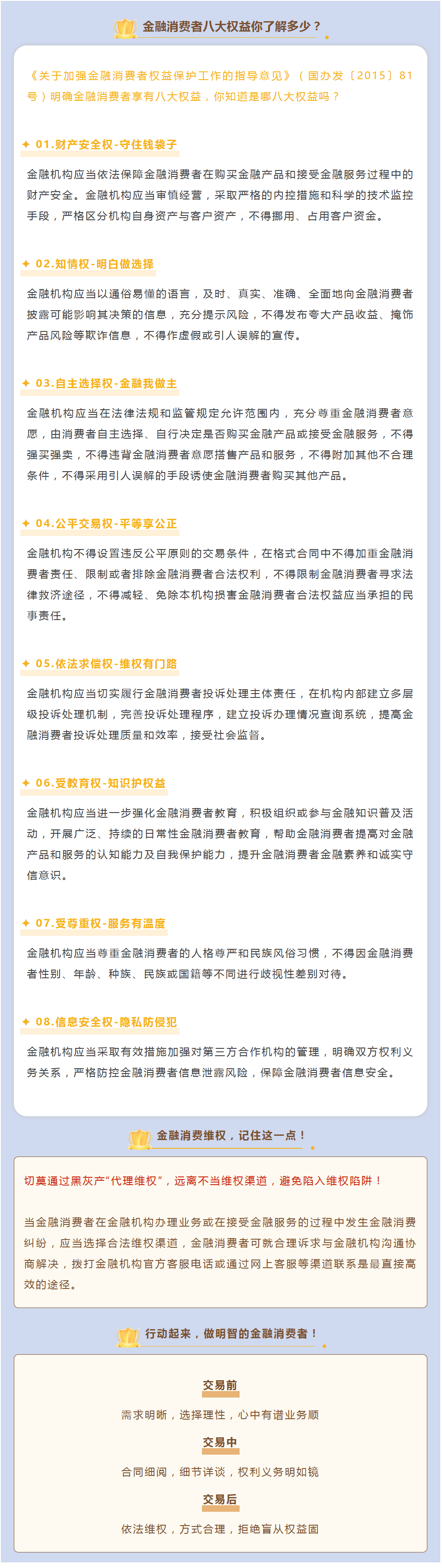 活動主題:積極踐行以人民為中心的價值取向,圍繞群眾關(guān)心關(guān)注的內(nèi)容,組織開展金融知識普及,幫助金融消費者和投資者理性選擇適合自己的金融產(chǎn)品,遠離虛假宣傳、非法中介、非法金融和電信詐騙等活動侵害。注重發(fā)揮縣域派出機構(gòu)和基層金融機構(gòu)力量,推動金融知識和風(fēng)險提示深入基層、直達群眾。積極發(fā)揮金融助力提振消費作用,不斷優(yōu)化提升金融服務(wù)水平,讓金融行業(yè)發(fā)展更好滿足人民群眾美好生活需要。